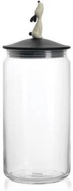 Alessi hondenvoederbewaarpot Lulà Jar met deksel, in thermoplastische hars en glas- De deksl is afgewerkt met een zittend hondje-.