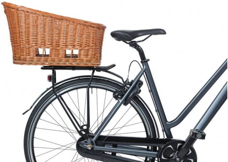 De Basil Pasja hondenfietsmand MIK is perfect als je graag met je hond fietst. De duurzame rieten mand bevestig je eenvoudig achterop je bagagedrager en is afneembaar. Met de Basil Pasja MIK medium neem je je hond overal mee naar toe. De rieten fietsmand is verkrijgbaar in een medium maat (45 cm). De fietsmand wordt geleverd inclusief kussentje zodat je huisdier comfortabel zit. Dit kussentje is wasbaar. De mand is gemaakt van handgevlochten riet. Daarmee is de mand duurzaam. De Basil Pasja is eenvoudig te bevestigen met de voorgemonteerde MIK-adapterplaat. Met deze adapterplaat klik je de mand eenvoudig in jouw bagagedrager of voordrager met MIK-profielen of een MIK-bagagedragerplaat. Wil je ook eens zonder je viervoeter op pad? Dan klik je de mand er net zo gemakkelijk weer vanaf. De MIK-adapterplaat past op veel bagagedragers, dames-, heren-, en de elektrische fiets. Je hond extra beschermen? De Pasja hondenfietsmand is uit te breiden met de Basil Pasja Space frame. Een handige draadkoepel die je over de Basil Pasja kunt plaatsen. Eigenschappen: Eenvoudig te bevestigen op elke fiets, ook op E-bikes. Geleverd inclusief MIK-adapterplaat. Gemaakt van duurzaam riet en inclusief een comfortabel en wasbaar kussentje. Uit te breiden met de Basil Pasja Space frame draadkoepel (apart verkrijgbaar). Afmetingen: 45 cm x 34 cm x 33 cm (Buitenwerkse maten) Positie op de fiets: Achterop Bevestiging op: Bagagedrager Materiaal: Riet Volume (Ltr): 30 Grofmazig / Fijnmazig: Nvt Montage: Geschikt voor MIK systeemdrager/carrierplaten Inclusief bevestigingssysteem: Ja Afneembaar: Ja Handvat: Nee Diefstalbeveiliging: Nee Inclusief Deksel: Nee Geschikt voor Honden: Ja Draagcapaciteit: Max. 10 kg Garantie: 2 jaar, via het verkooppunt waar je het gekocht hebt.