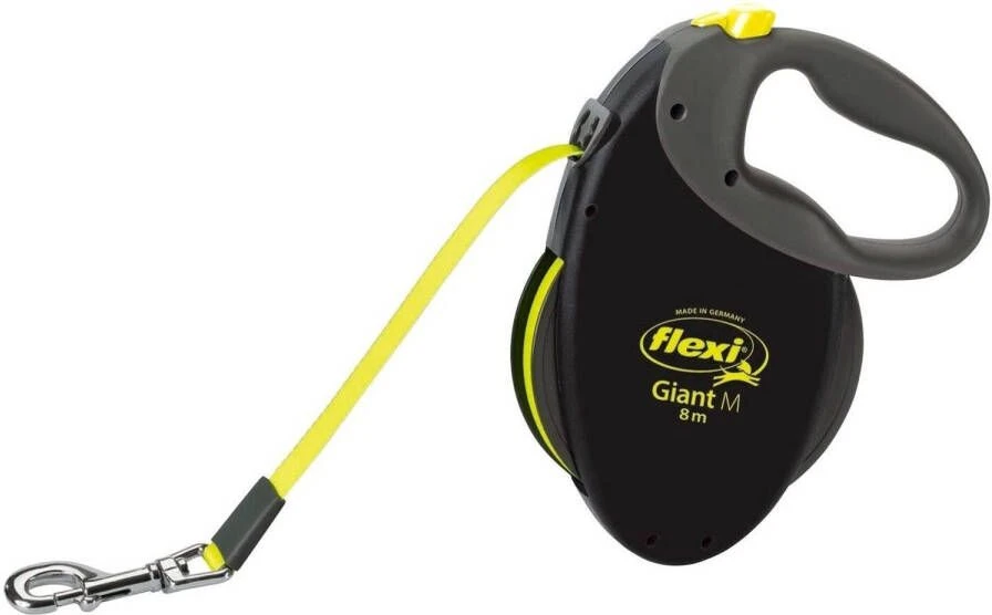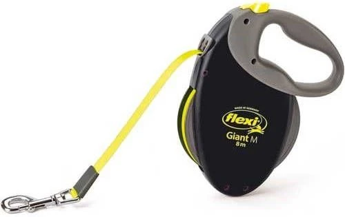 De Flexi Giant M voor de hond (neon) is een robuuste hondenriem met een lengte van maximaal 8 meter en is geschikt voor honden tot 25 kg.