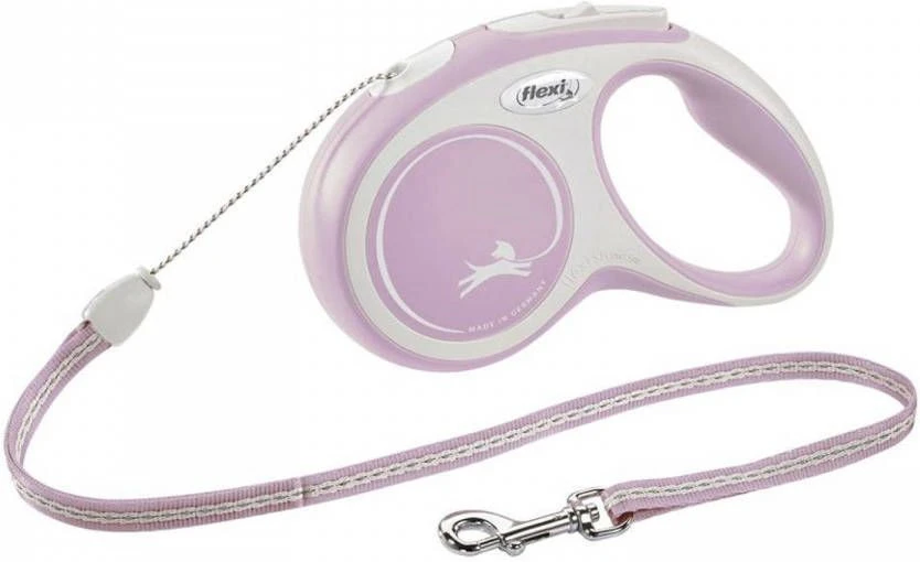 Bij Flexi kan je kiezen tussen lijnen met een koord en lijnen met tape. Het is een persoonlijke voorkeur welke variant je het fijnst vindt. In principe zijn beide soorten even sterk en veilig om te gebruiken. De New Comfort Tape bevat een tape.