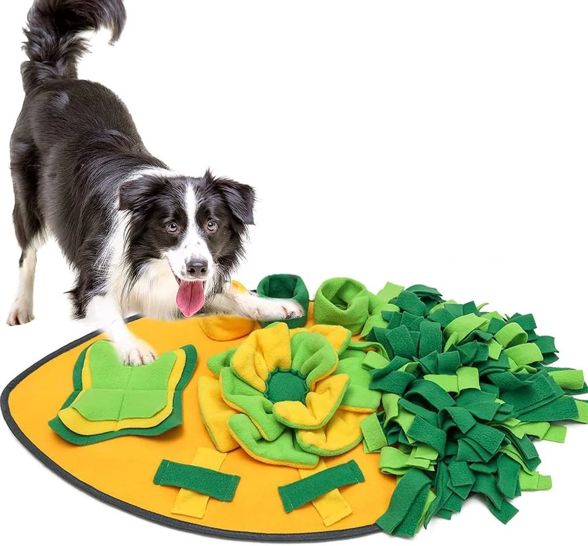 • Uitdagend Voederspel: Verberg de favoriete snacks van je hond in de oranje bloem en rommelige grasring van de mat om hun natuurlijke zoekvaardigheden te stimuleren en verveling tegen te gaan.