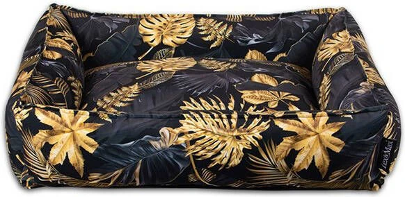 Wanneer je hond eenmaal in de Lex & Max Dubai hondenmand heeft gelegen zal hij of zij niet anders meer willen! Deze stijlvolle mand is beschikbaar met een tropische gouden en zwarte print.