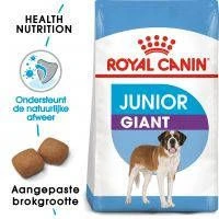 Royal Canin Giant Junior is energierijk hondenvoer voor junior honden vanaf 8 maanden van zeer grote rassen met een volwassen gewicht boven de 45 kilo. Junior honden zitten in de tweede groeifase waarin de spieren zich gaan ontwikkelen. Het is belangrijk dat de grote spieren van deze juniors van zeer grote rassen voldoende ondersteuning krijgen tijdens deze periode.