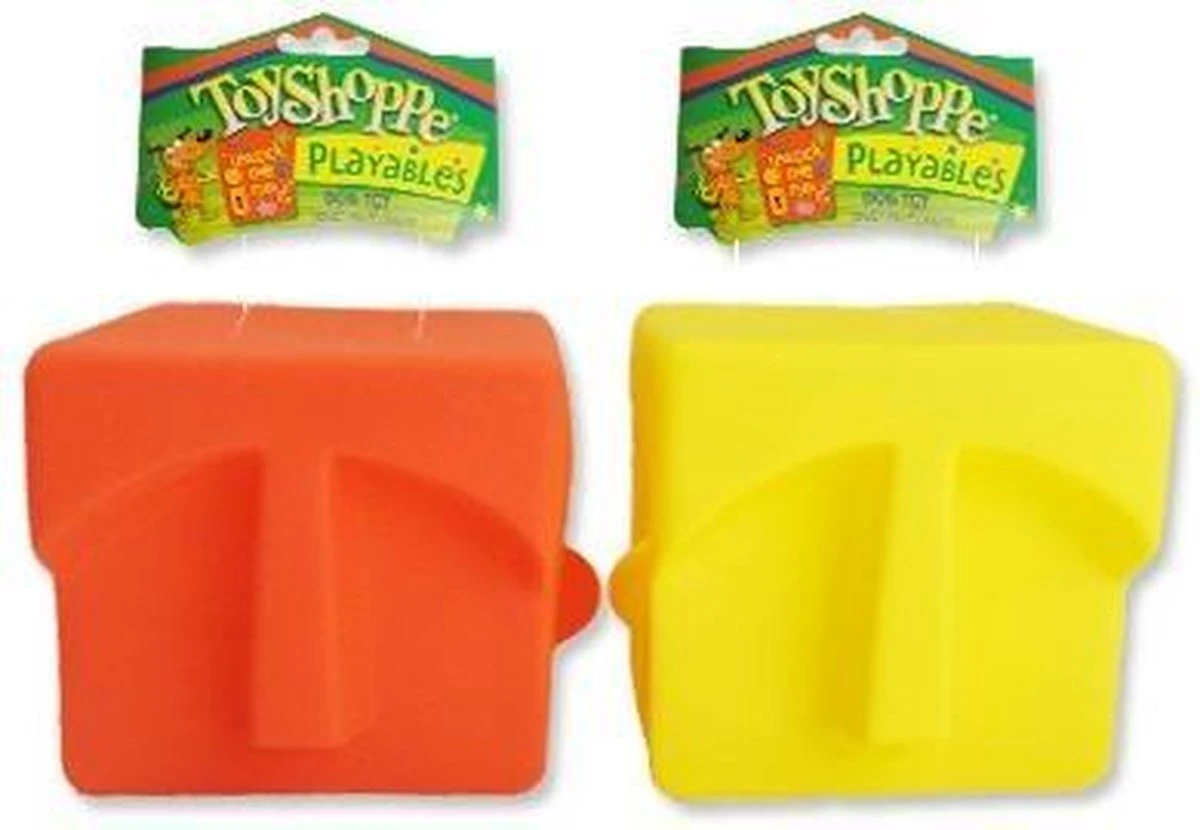 Leuke set van 2 gekleurde honden blokken met piep. Elk blok is ca. 10 x 10,5 x 10,5 cm groot en weegt 150 gram. U ontvangt verschillende kleuren, leuk ingepakt in folie dus klaar om cadeau te doen !