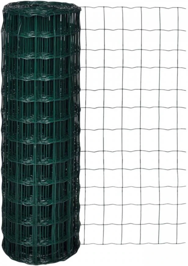 Deze euro hekwerkset is te gebruiken voor meerdere doeleinden zoals decoratie, simpele afbakening van het perceel of als ren voor kippen, puppies, konijnen, enz. Het is een hoogwaardig euro hek. De 2,2 mm groenzwarte PVC-coar.