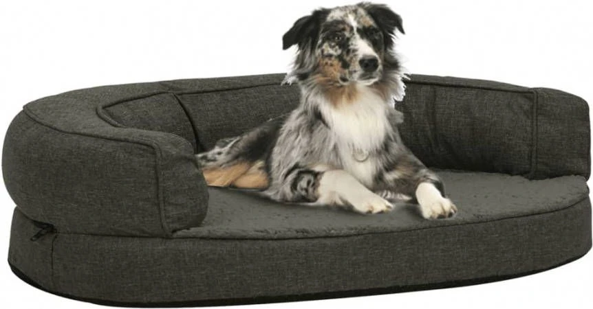 vidaXL Hondenbed ergonomisch linnen look 75×53 cm fleece donkergrijs